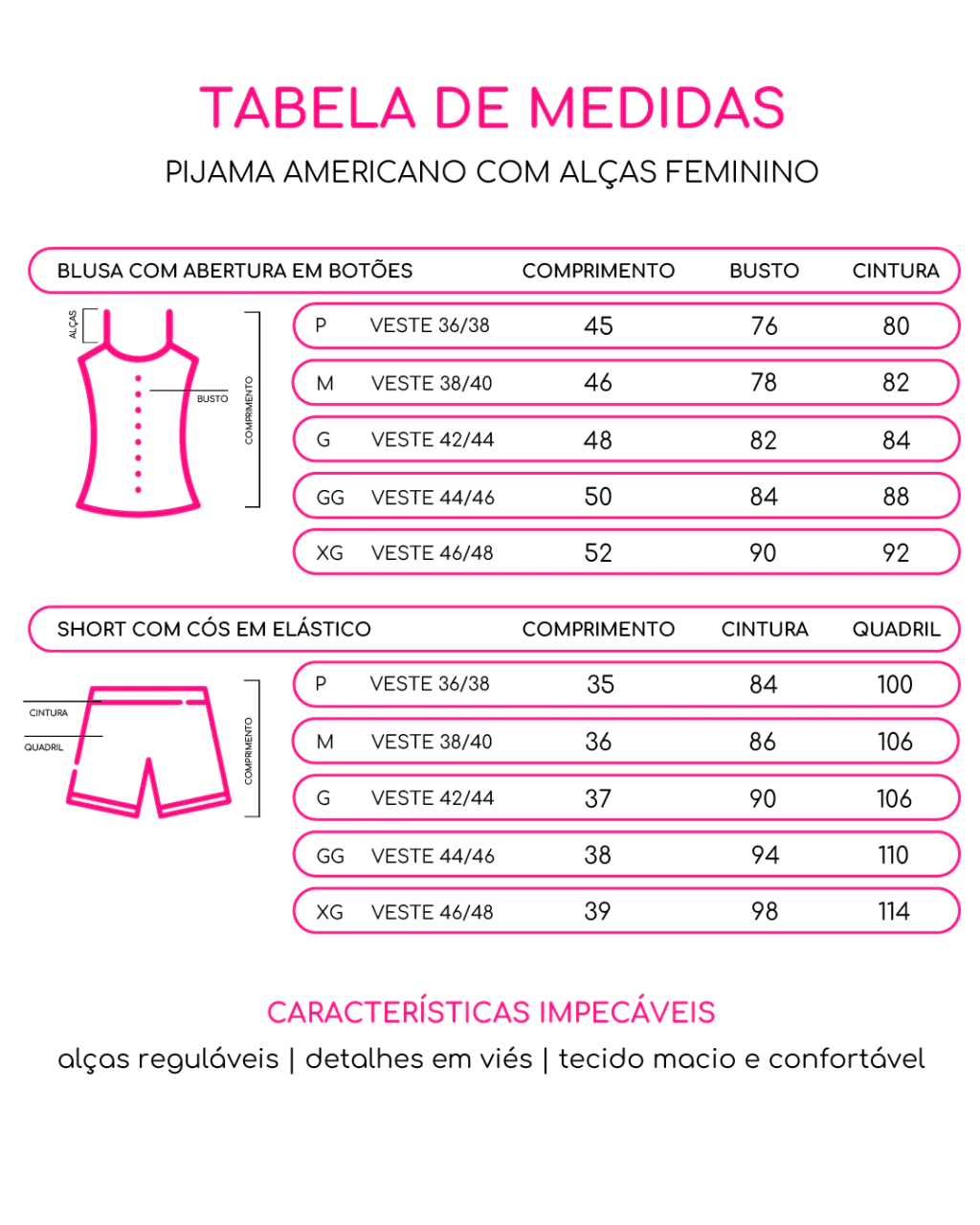 📌 Dica: Para manter a durabilidade do pijama, siga as instruções de lavagem na etiqueta.