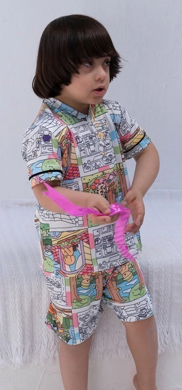 O diferencial? A criança pode soltar a imaginação, personalizar o pijama quantas vezes quiser e, depois da lavagem, o desenho desaparece para começar tudo de novo.